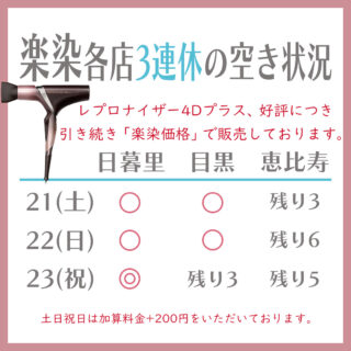 ☆ 3連休の空き状況 ☆