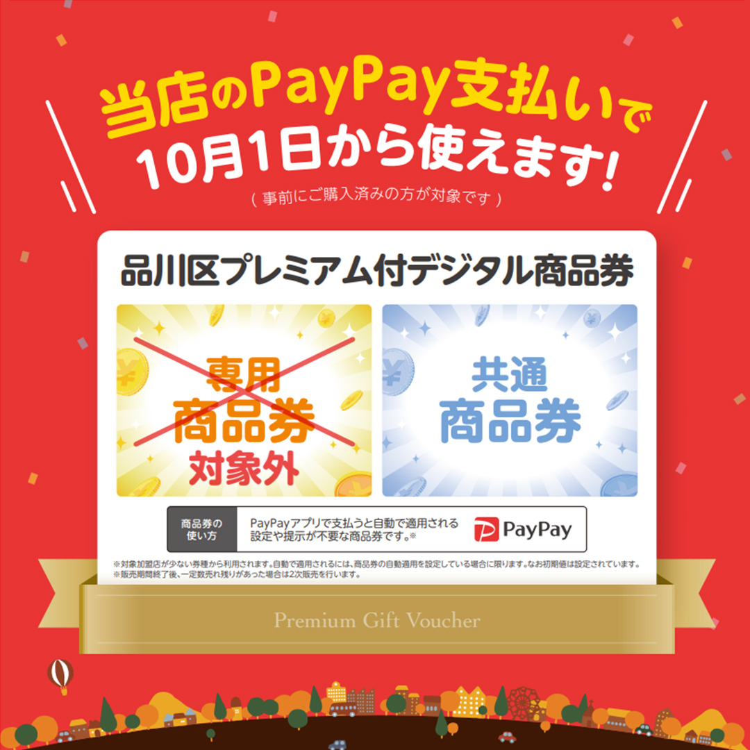 【目黒店】品川区プレミアム付デジタル商品券つかえます(2/28まで)